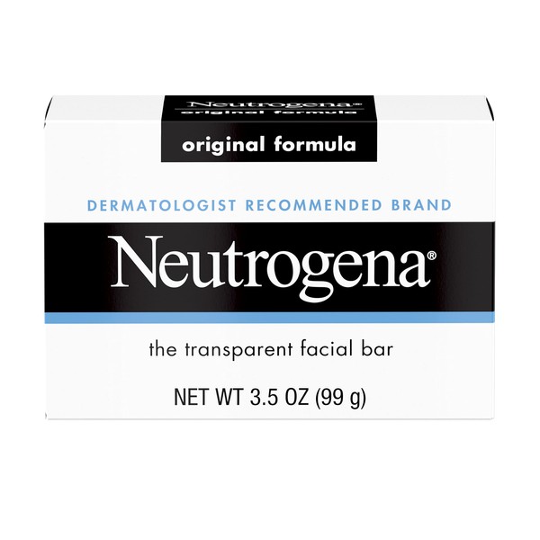 Neutrogena Original Amber Bar Facial Cleansing Bar with Glycerin, Clean-Rinsing, Transparent Face Soap, Free of Harsh Detergents, & Dyes, 3.5 oz