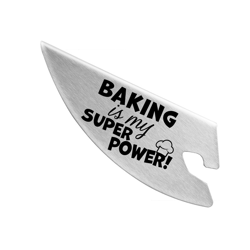 - Pouring Chute has fun Slogan etched on the side that reads Baking is My Superpower; perfect gift for the baker in your life