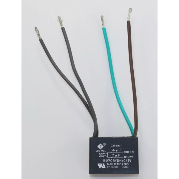 New Tech CEILING FAN CAPACITOR CBB61 4uf+7uf 4 WIRE Genuine