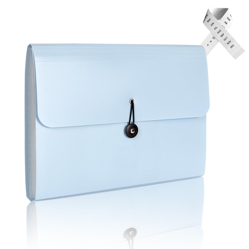 Nicfaec Expanding File Folder, 13 Pockets, Light Blue, Polypropylene for Work, School, Home, Office