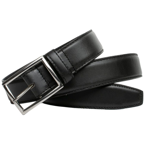 - CLASSIC TRADITIONAL STYLE: Versatile, dressy and fashionable. The ultra-durable real leather belt strap has stitched edges and a width of 1⅜ inches (35 mm); the non-allergenic titanium buckle is virtually indestructible.
