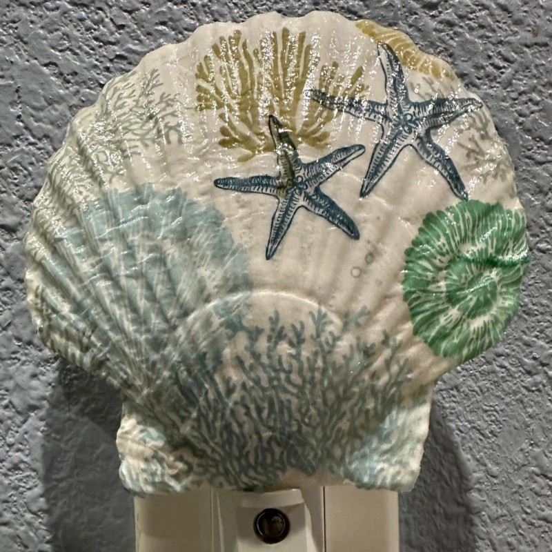 Nightlight Scallop Shell Coastal Decoupage Shell Art Light- Beach Theme Home Dec