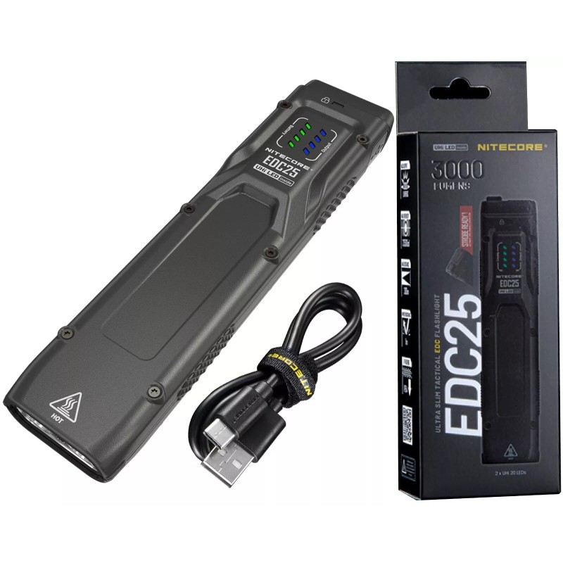 The Nitecore EDC25 flashlight boasts amazing brightness and throw, making it an ideal choice for everyday carry. Featuring the innovative NiteLab UHi 20 LED, the EDC25 delivers a powerful 3000 lumen output and an impressive throw of 328 yards.
