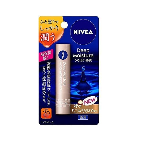 Nivea Deep Moisture Lip Vanilla & Macadamia, 0.08 oz (2.2 g) x 3 Packs