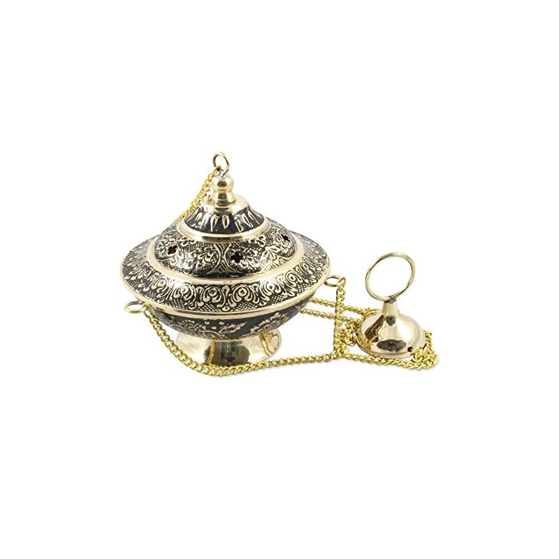 NKlaus Incense Burner Handmade Brass Engraved Painted Incense Burner 2762