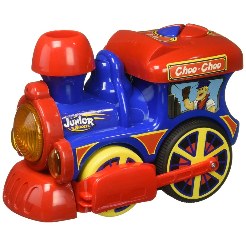This Junior Racers RC- My First Choo-Choo is a perfect introduction to remote controlled vehicles for ages 3 and up. This vehicle comes with a large steering wheel remote that controls realistic sounds and stop and go features. Vehicle also features working lights.