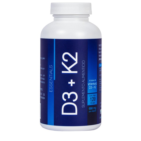 - ✅Suplemento alimenticio a base de Vitamina D3 + K2, 120 Cápsulas Vegetales, fórmula enriquecida con antioxidantes.