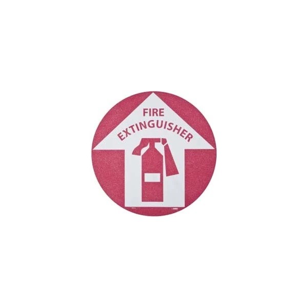 NMC Fire Extinguisher, Anti-Skid Pressure-Sensitive Vinyl Floor Sign Round, Red on White, Adhesive Backed, For Fire