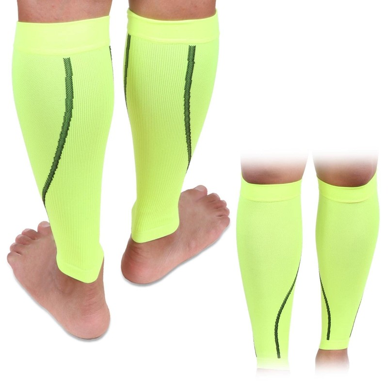 [NMJ] ふくらはぎ サポーター (2枚入り) カーフスリーブ スポーツ 肉離れ対策 (XL, イエローグリーン)