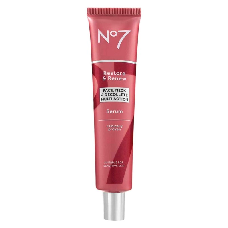 - No7 Restore and Renew Face & Neck Multi-Action Serum is clinically proven to deliver a firmer feeling, visibly smoother face & neck, helping you to look as young as you feels.