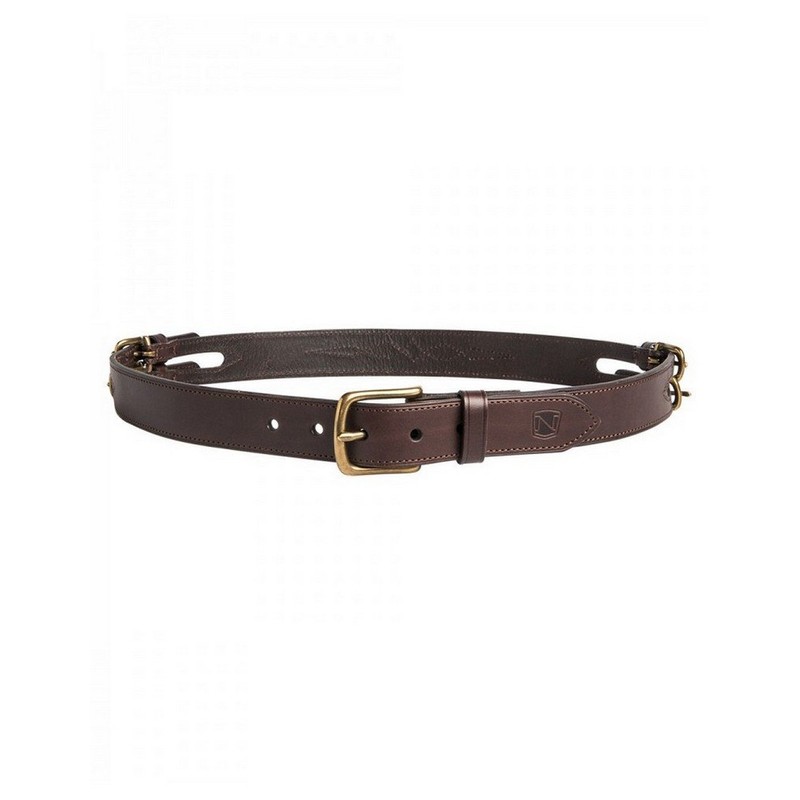 The Noble Outfitters Double Buckle Belt adds sophisticated style to your look. Designed by an English saddler, inspired by bridlework and crafted from genuine leather, it has a two-buckle detail and a removable front buckle. 1.25" wide.