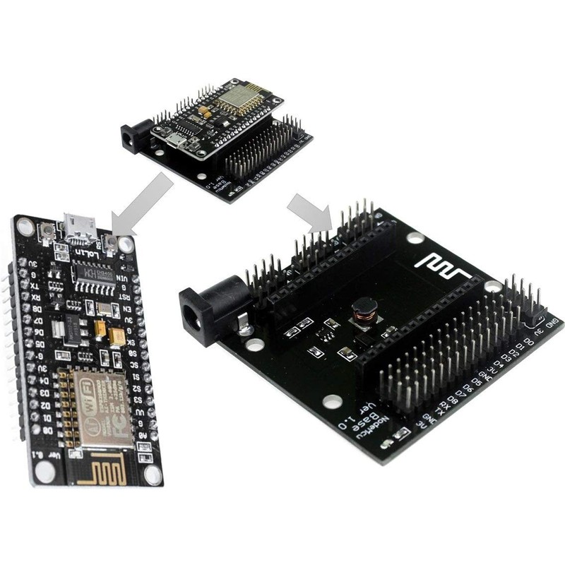 NodeMCU V3 Base Board: This base board is only for NodeMCU V3 CH340 module. This baseboard is fitted with an onboard switching DC-DC buck (wide input range) and a standard 5.5 x 2.1 mm DC socket, mounting holes and numerous headers are available to esase NodeMCU V3 module usage.