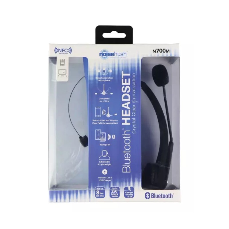 NoiseHush N700M Bluetooth Single Ear Headset & Mic - Black