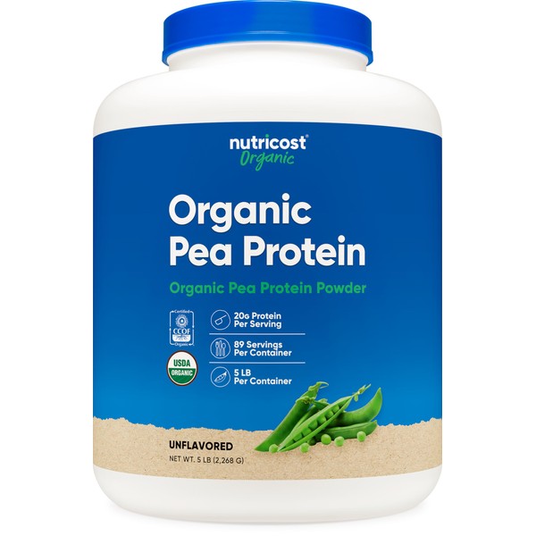 Nutricost Organic Pea Protein Isolate Powder (5LBS) - Unflavored, Certified USDA Organic, Protein from Plants, Vegetarian Friendly, Gluten Free, Non-GMO