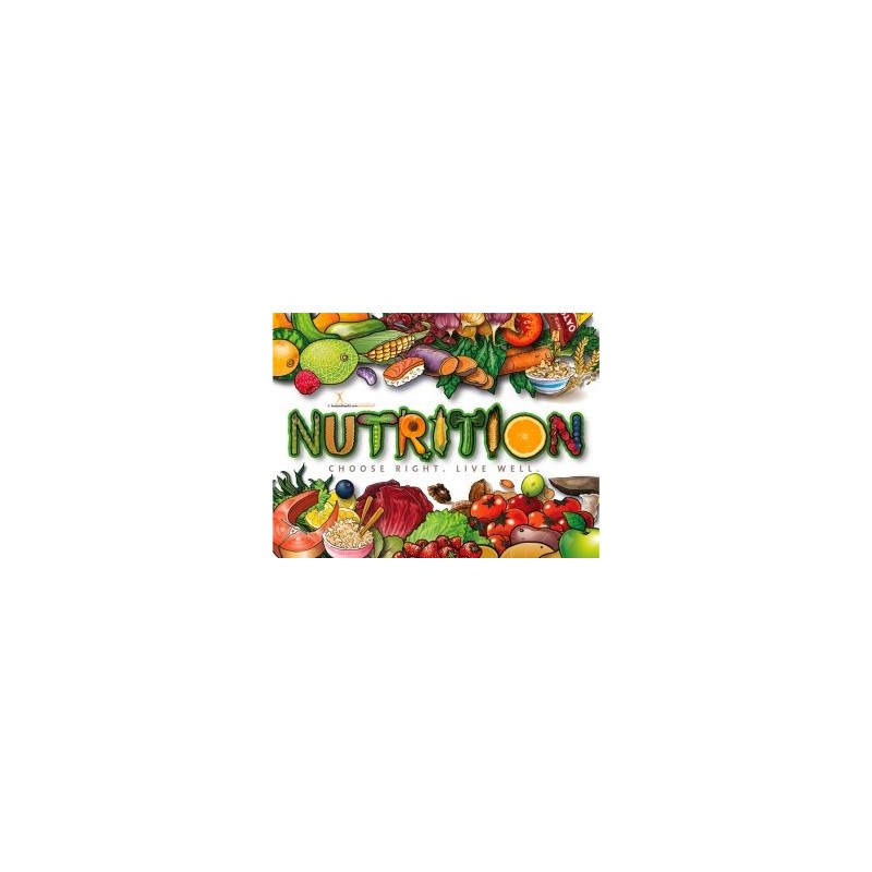 The World Health Organization says, "Nutrition is the intake of food, considered in relation to the body’s dietary needs. Good nutrition – an adequate, well balanced diet combined with regular physical activity – is a cornerstone of good health. Poor nutrition can lead to reduced immunity, increased susceptibility to disease, impaired physical and mental development, and reduced productivity." As a teacher, nutrition or health professional you realize that most consumers are confused, misinformed and distracted by the ads and partial claims of the food industry, the media and movie stars who write books. They don't really understand nutrition and they have little time to implement the simple steps to a healthy lifestyle. You know they can do it - show them how to eat with this poster. There are only healthy, colorful and delicious choices. We did not have to appease the "national cookie or chip board" with this poster and you will follow the Dietary Guidelines to the T with this display.
