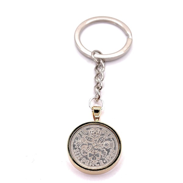 OCC Old Coin Cufflinks Solid Keyring 1965 60th gift Birthday Sixpence Keyring GLD