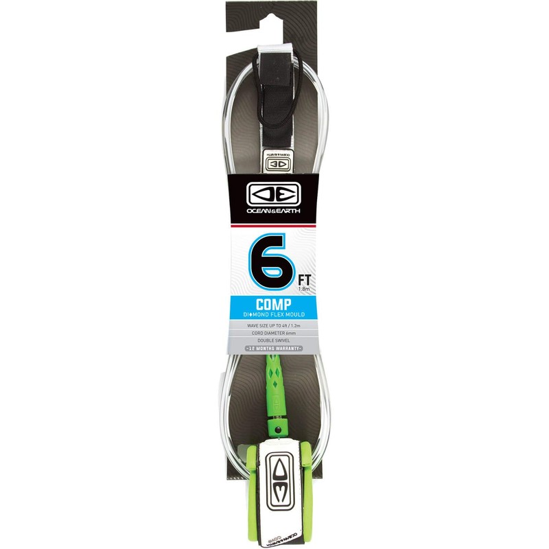 Ocean & Earth Comp Moulded White Surfboard Leash - 6'