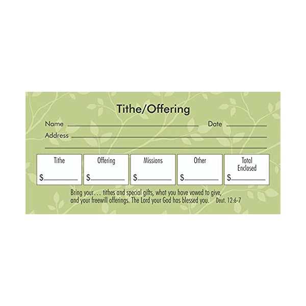 Offering Envelope - Tithe/Offering/Missions/Other (NIV Scripture - Deut 12:6-7)