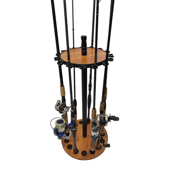 Old Cedar Outfitters Oak Finish Round Rack 15 Rod and Reel Combo Capacity