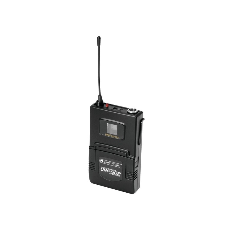 - Pocket transmitter suitable for UHF-502 microphone system including lavalier microphone