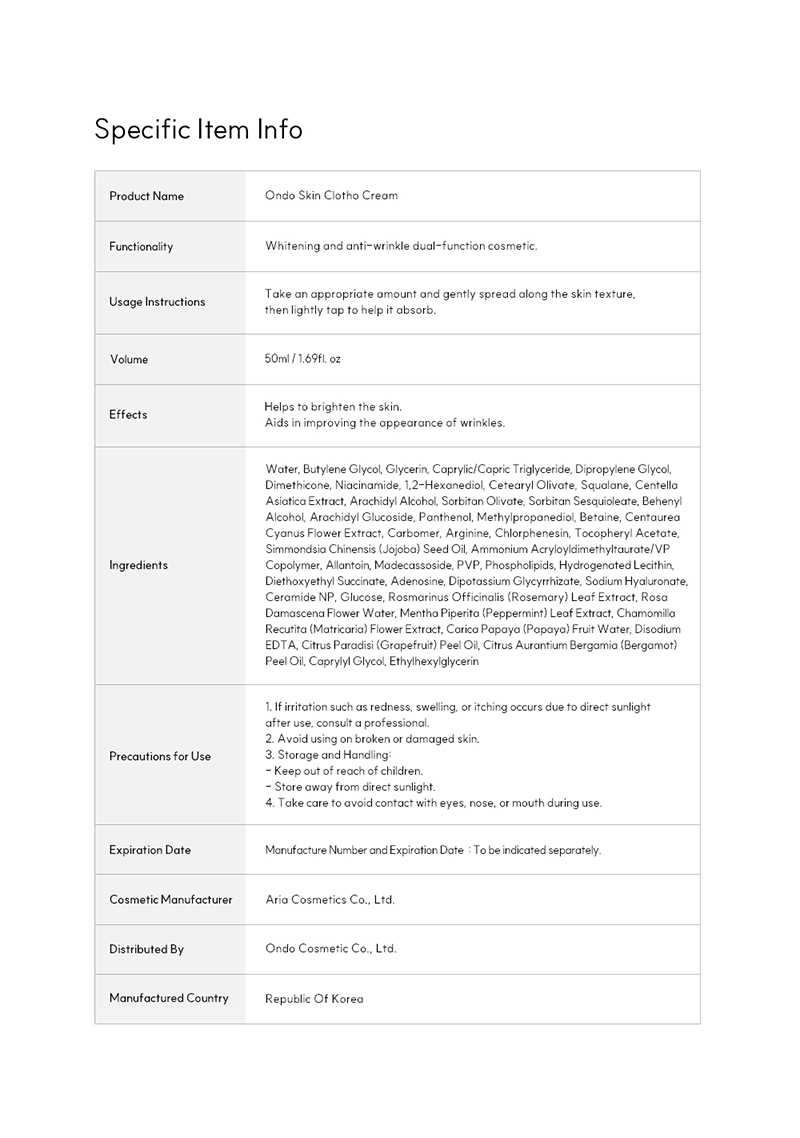 Ondo Skin Clotho Cream 50ml - Ondo Skin Clotho Cream 50ml