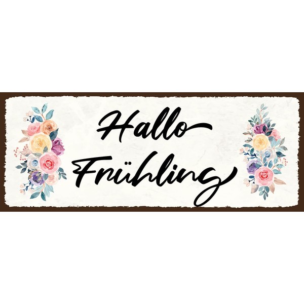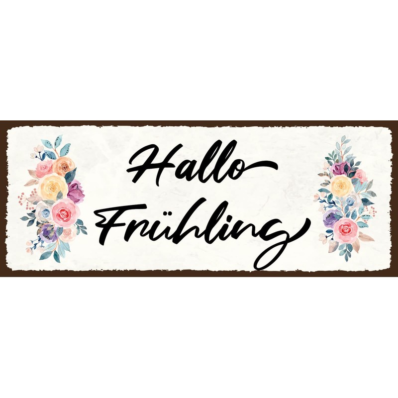 Ontrada Tin Sign Curved 27 x 10 cm Hello Spring Gift Decorative Gift Sign