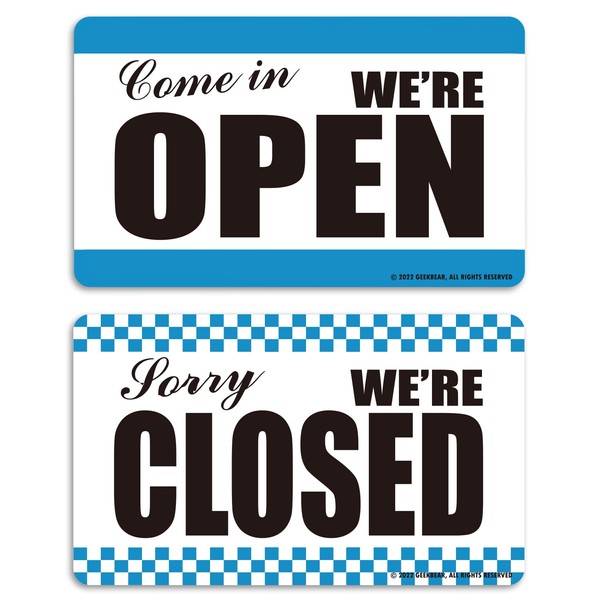 • Highly visible and durable: GEEKBEAR open closed signs offer you a traditional, yet modern and professional look. Contrast designs between front and back and its size are applied to improve visibility and readability. Besides, the signs are made by the premium printing method, they will not lose their colors easily. If your business is exposed to extreme weather conditions, especially sun rays, GEEKBEAR signs for opening and closing must be the ideal signage [SIZE: 25cm x 15cm]