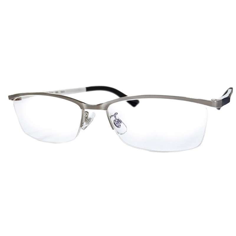 [optic ROSE] 若くみえる おしゃれ老眼鏡 リーデインググラス メンズ ブルーライトカット UVカット ハーフリム +1.0~+3.0 2色 (Silver, 3.0)