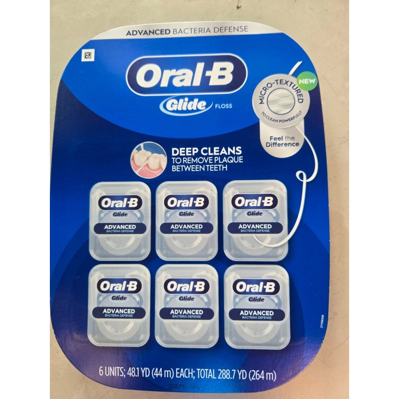 ORAL-B GLIDE ADVANCED BACTERIA DEFENSE FLOSS 44m each (6 pack)