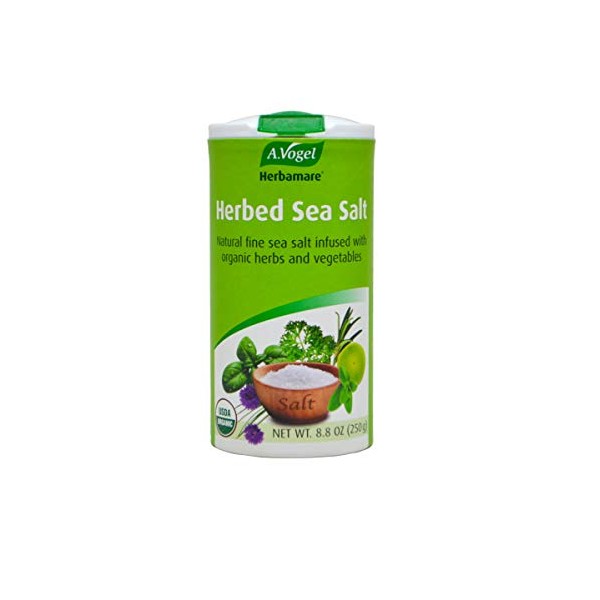 A Vogel Herbamare Original Organic Herb Seasoning Salt DescriptionFlavorful Preference to Table Salt Herbamare is made according to the original recipe of the world famous Swiss Naturopath A.Vogel and is prepared with fresh, organically grown herbs. The fresh herbs are combined with Natural Sea Salt from salt marshes located in Camargue, South France and allowed to 'steep' for up to one year before the moisture is removed by a special vacuum process at low temperature. This steeping process integrates the full herb and vegetable flavor into the salt crystal. Use Herbamare in place of common table salt to enhance the flavor of your favorite dishes like pasta, chicken, salads, vegetables, fish or rice. Always keep a container of Herbamare on your dining table and in your condiment cupboard to create a delicious seasoning for all your home cooking.