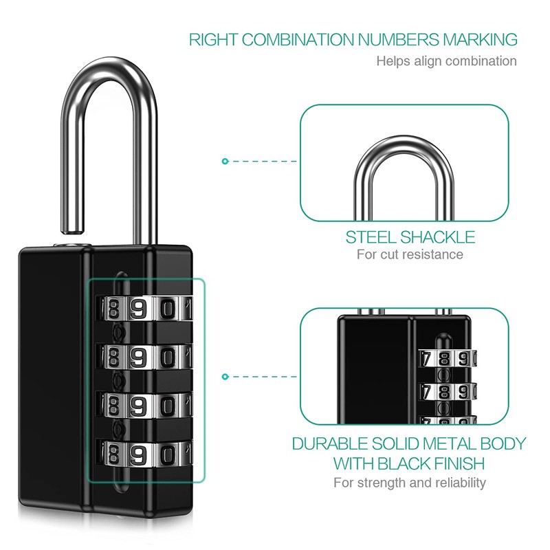 - HIGH SECURITY: 4-digit numbers offer an extra level of security with 10000 combinations, 10 times safer than 3-digit combo lock. And it is difficult to crack, which cannot be removed by human force.