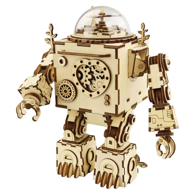 - Robotime Laser Cut Wooden DIY Robot Puzzle Music Box with LED light