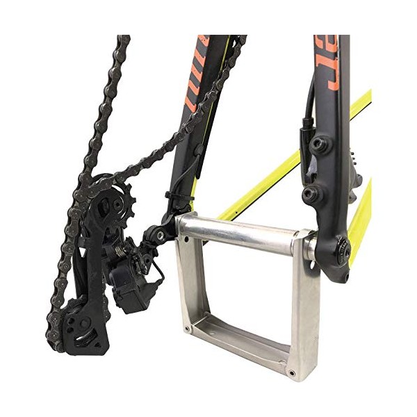 - The definitive end hardware for 0.5 inch (12 mm) thru axle disc brake loading, perfect for vertical ring bags, 0.5 inch (12 mm) thru axle disc brake loading. Due to the structural structure, the chain cannot pass through to the shaft. Please pull the chain with a chain hook or something similar to avoid scratching the frame. Through axle not included. Please remove from the bike you are wheeling. Made of aluminum, lightweight and compact Foldable. (It will fit in order of falling. It floats approximately 4.3 inches (110 mm)