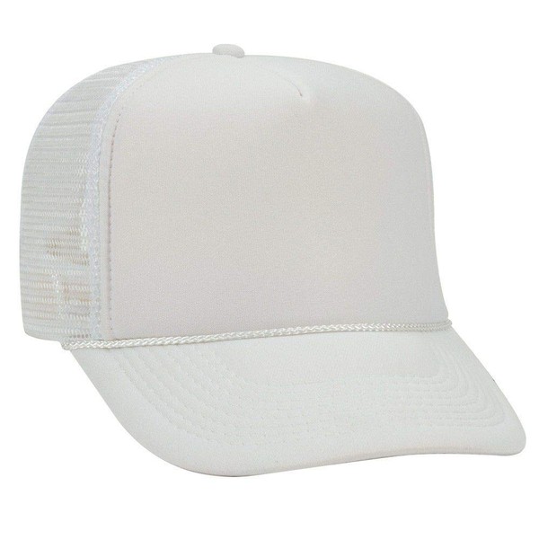 OTTO Polyester Foam Front 5 Panel High Crown Mesh Back Trucker Hat - White