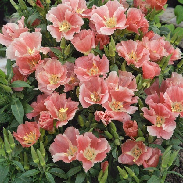 Godetia Sybil (Godetia Grandiflora Azaelaflora Sybil Sherwood) - A stunning tall variety reaching 18 inches tall with distinctively salmon colored double flowers. Looks a picture in annual borders, adding height and color, or used as a cut flower. These double flowered Godetias are sure to attract attention any in flower garden. Godetia is easily grown from flower seeds and grow as annuals in most areas. Salmon colored Godetia is excellent to use in flower arrangements with contrasting colors.