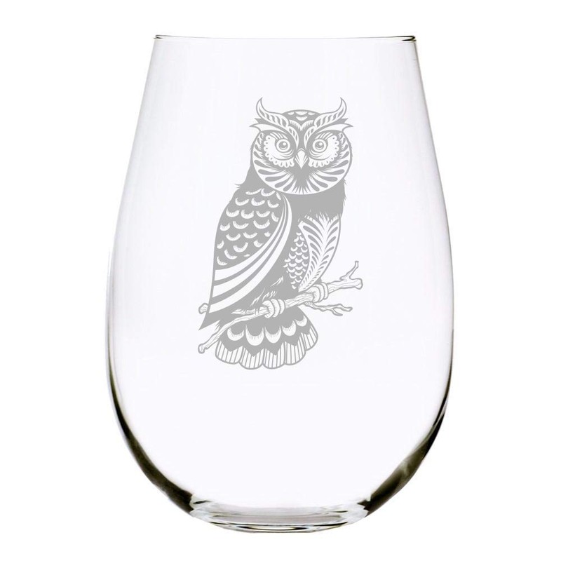 Owl stemless wine glass, 17 oz.