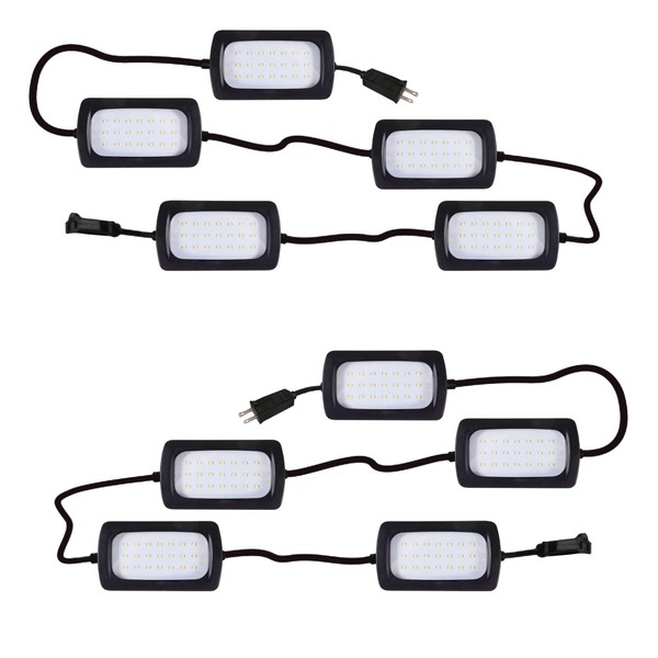 Owleye 50FT Led String Work Light 85W 8000LM Waterproof Construction String Lights Linkable Temporary Work Lighting Outdoor Indoor Worklight (5 Light Heads)-2 Pack