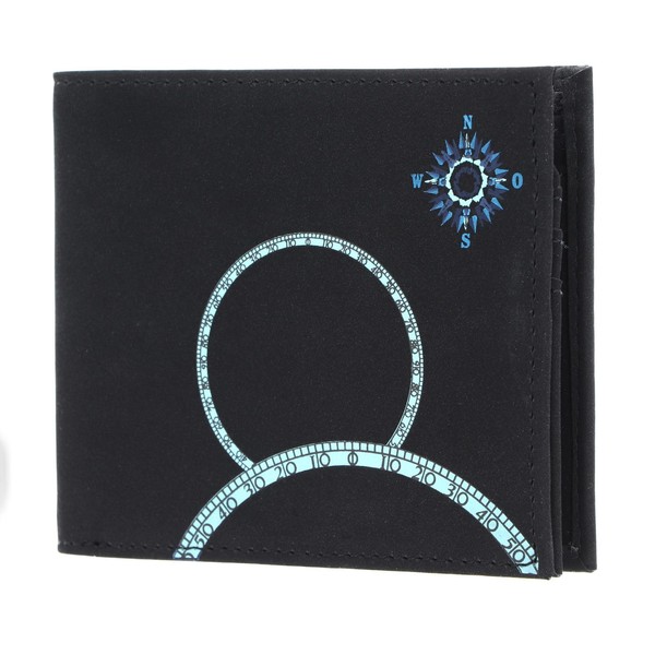 - Durable, waterproof and durable Oxmox wallet in landscape format. The wallet has many compartments and a wind rose print on a black background. Dimensions: 12 x 10 x 2 cm.