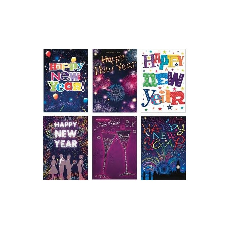 PACK OF 12 - Happy New Year Cards (Assorted Designs)