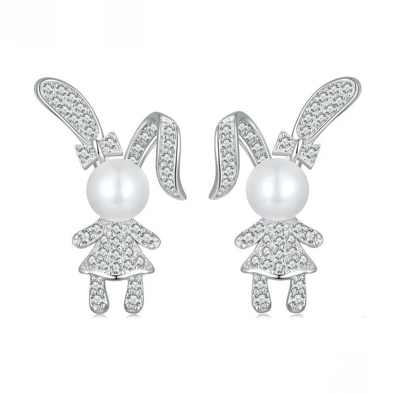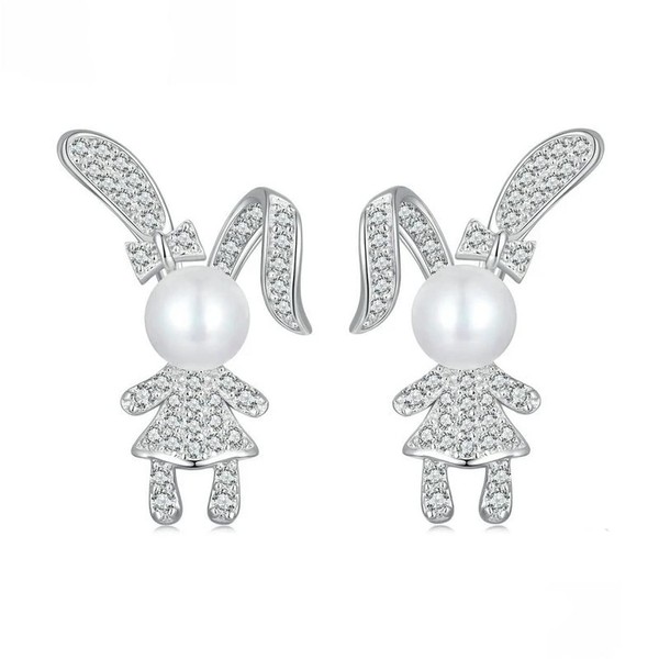 PAHALA 925 Sterling Silver Cute Rabbit With Zircon Pave Setting Stud CZ Earrings