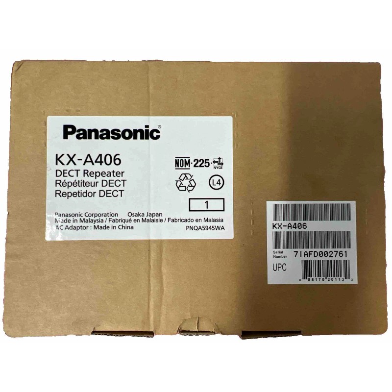 Enhance your communication experience with the Panasonic KX-A406 Wireless Repeater. This corded telephone model, compatible with all Panasonic KX-TG7500, KX-6500, KX-4000 (requires an additional handset for KX-4000 systems), and KX-3000 cordless phone systems, can extend the range and coverage of your existing system, ensuring that you never miss an important call again. With wireless features, you can say goodbye to the constraints of cords and wires, and enjoy unrestricted mobility. Buy now and experience seamless communication!