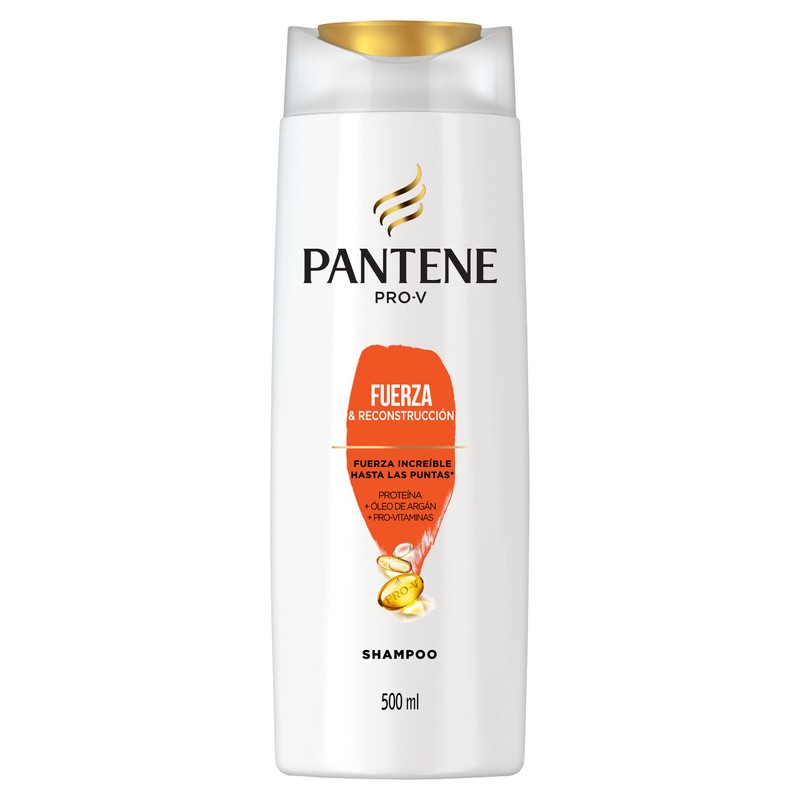 Pantene - Shampoo Fuerza y Reconstrucción, con Aceite de Argán, Shampoo sin parabenos, 500 ml