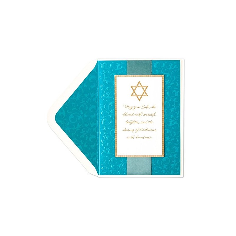 - Includes: 1 Embellished Passover Card, Ivory Envelope with Shimmer Teal Pattern Liner, and Gold Envelope Seal