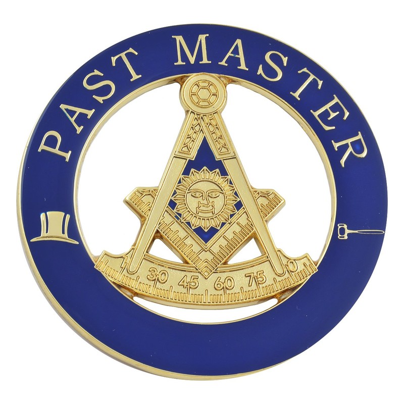 Past Master Round Masonic Auto Emblem - [Gold & Blue][3'' Diameter]