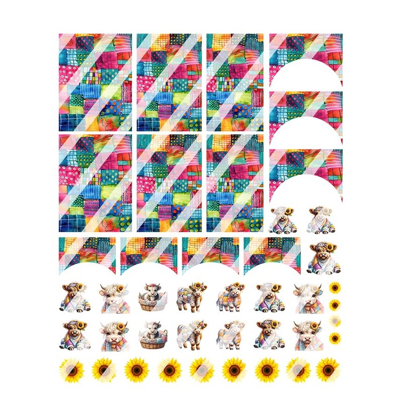 Patchwork Highland Cow Nail Art Decals- Waterslide Nail Decals