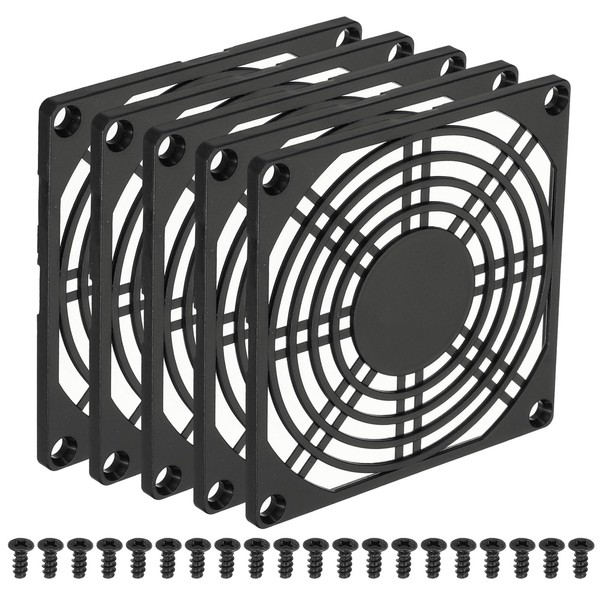 PATIKIL 92mm Fan Grill with Screws, 5 Pack ABS Plastic Frame Ventilator Grill Protector Mesh Dustproof Case Cover for Computer PC, Black