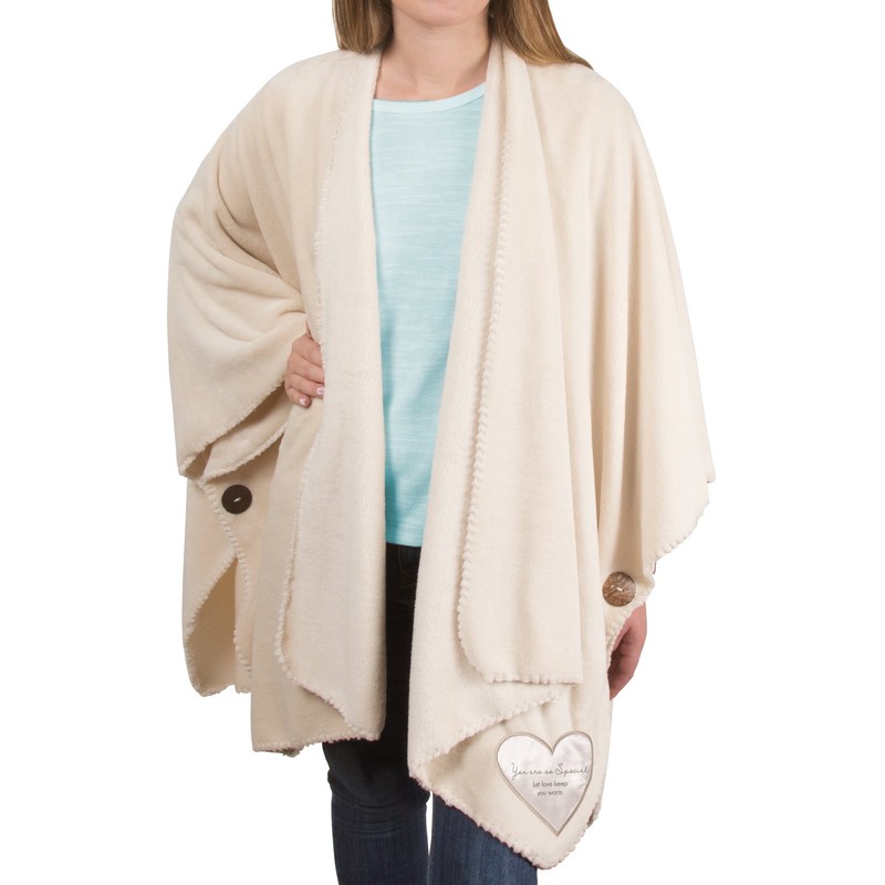 - IN-HOUSE DESIGN: "You Are So Special; Let Love Keep You Warm." text is printed onto the embroidered heart on the front of the shawl.