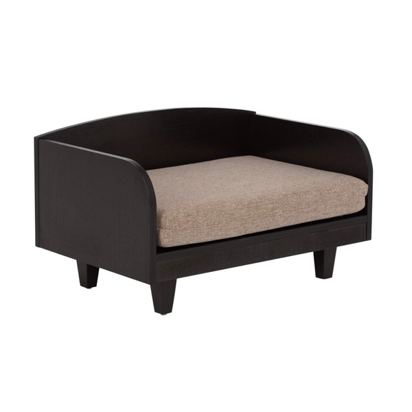 Treat your pet like royalty with this Studio Designs Paws and Purrs pet bed, which features a raised frame and a cozy mattress. With its sleek, curving lines, the bed blends into your contemporary home. Seat Dimensions: 21.75 inches wide x 14.5 inches deep Padded Foam Cushion: 3' thick Removable Zippered Cover for Easy Cleaning Beautiful Espresso Finish Melamine Recommended for Small to Medium Sized Pets Weight Limit: 25 pounds Pet: Cat, Dog Product Features: Machine Washable, Removable Cover
