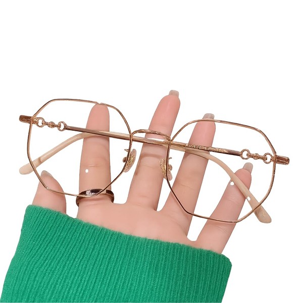 [カロカック] オクタゴン 多角形 メタルフレーム 韓国 トレンド おしゃれ サングラス 伊達 レディース メンズ 眼鏡 保護 ブルーライトカット PC眼鏡 AC 男女兼用 (シャンパンゴールド)