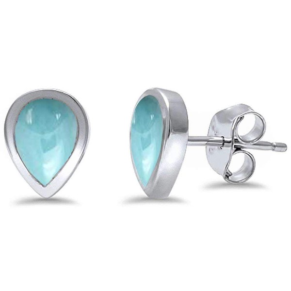 Pear Shape Natural Larimar Stud Earrings Sterling Silver